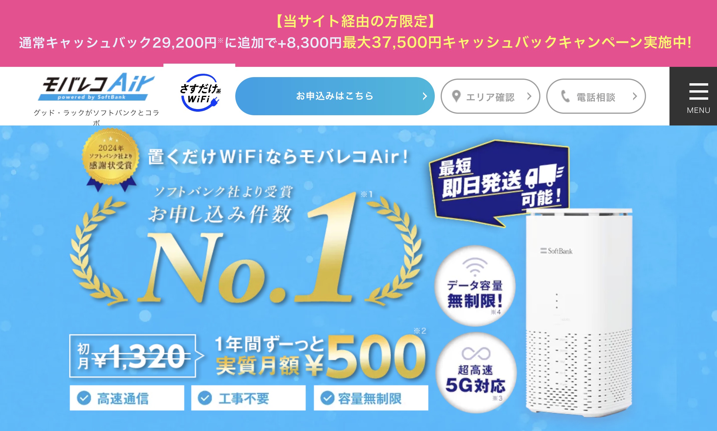 ソフトバンクairのキャンペーンは数多くありますが、キャンペーンのお得さ、申し込みのしやすから、万人にオススメできるのはグッド・ラック社のモバレコairとなります。