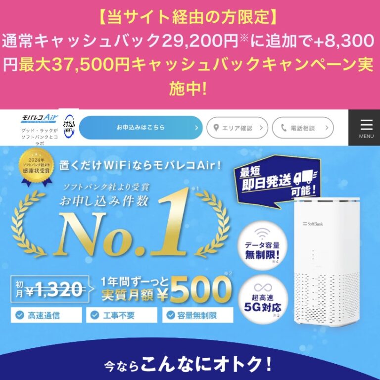 モバレコAir限定!37500円キャッシュバックキャンペーン